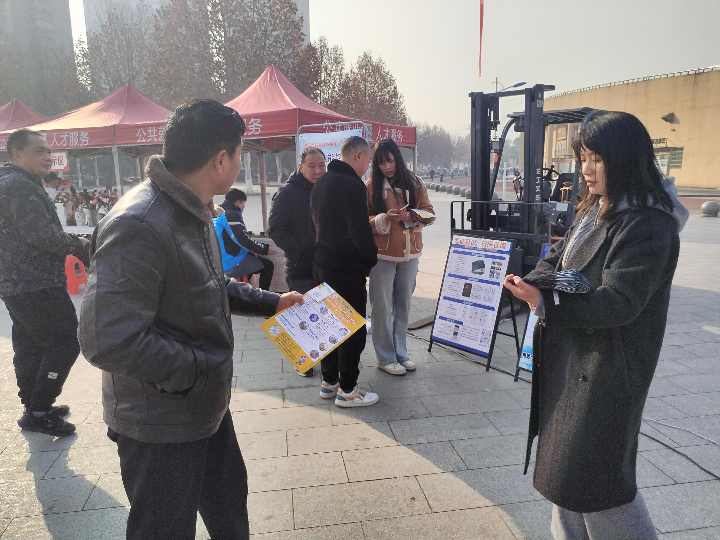 临空城集团受邀参加此次活动,并在招聘会现场设立了专门的展位,大力宣传与武穴市人社局合作的叉车培训项目,吸引了大量务工人员前来咨询。